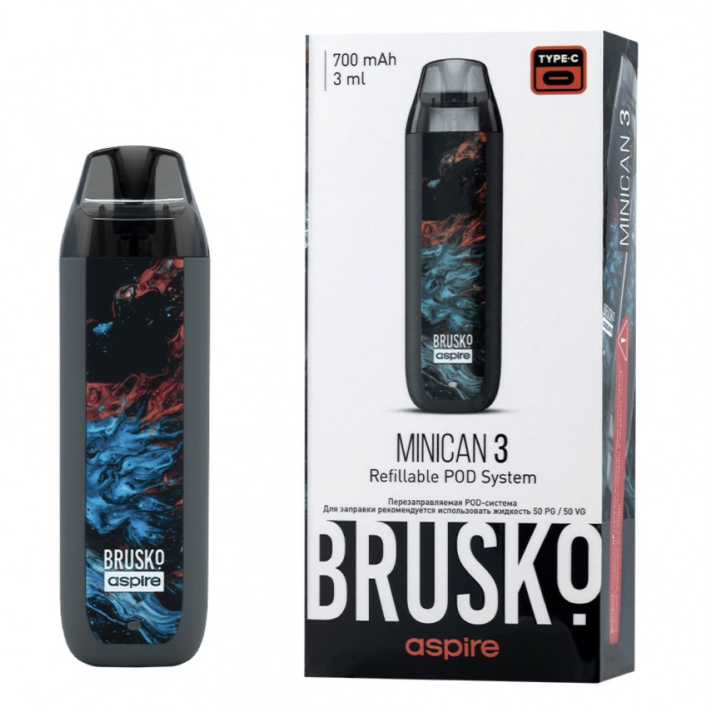 Перезаправляемая Под-Система Бруско Миникан 3 (Brusko Minican 3) 700 mah, Серый Флюид - купить в Иркутске